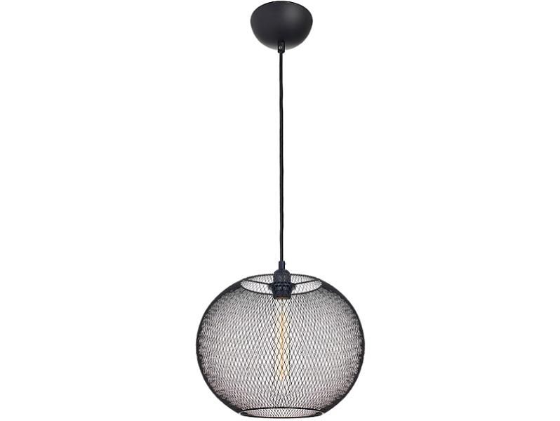 Pendente aramado com uma cúpula na cor preta e canopla em aço.